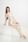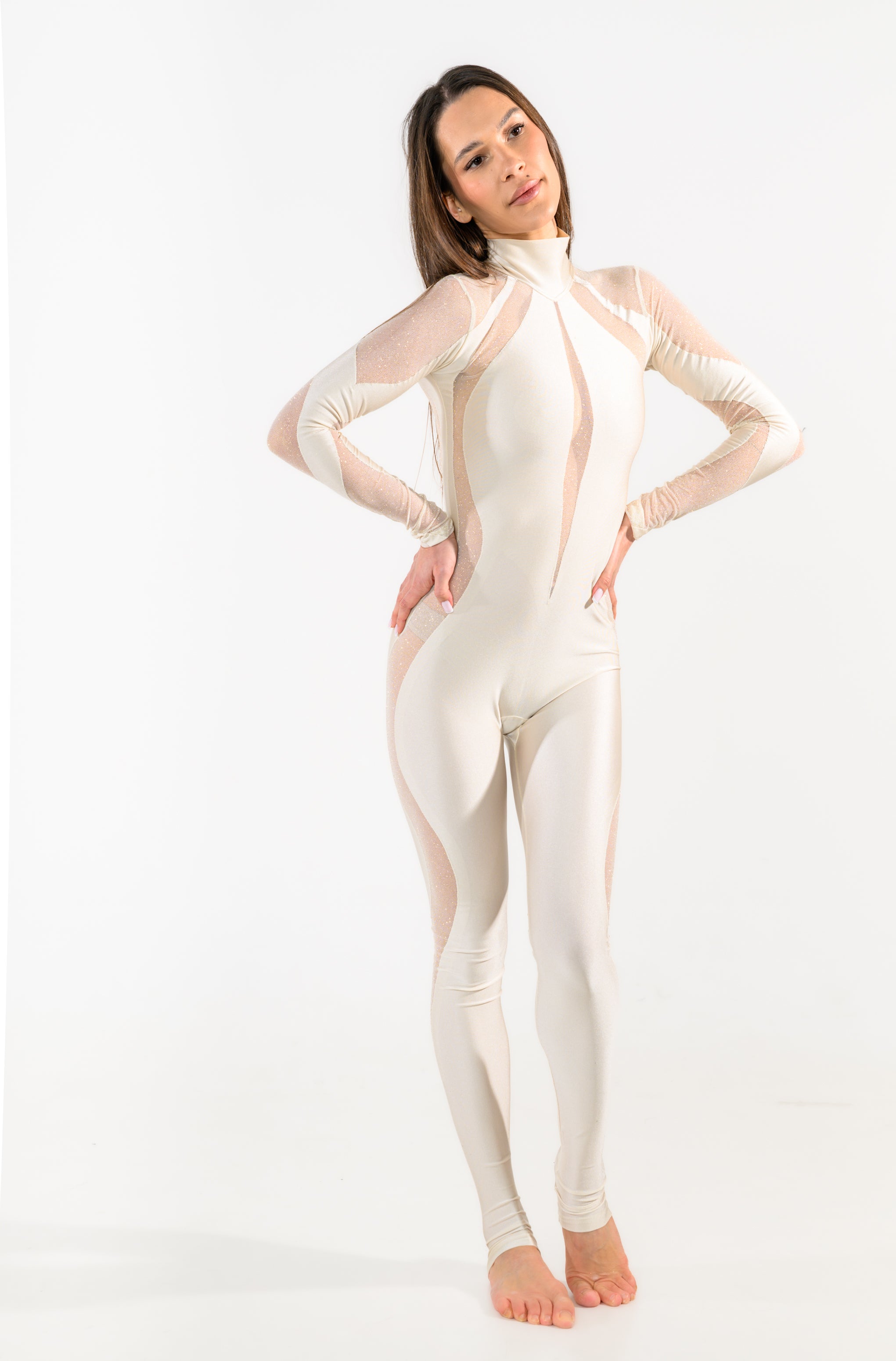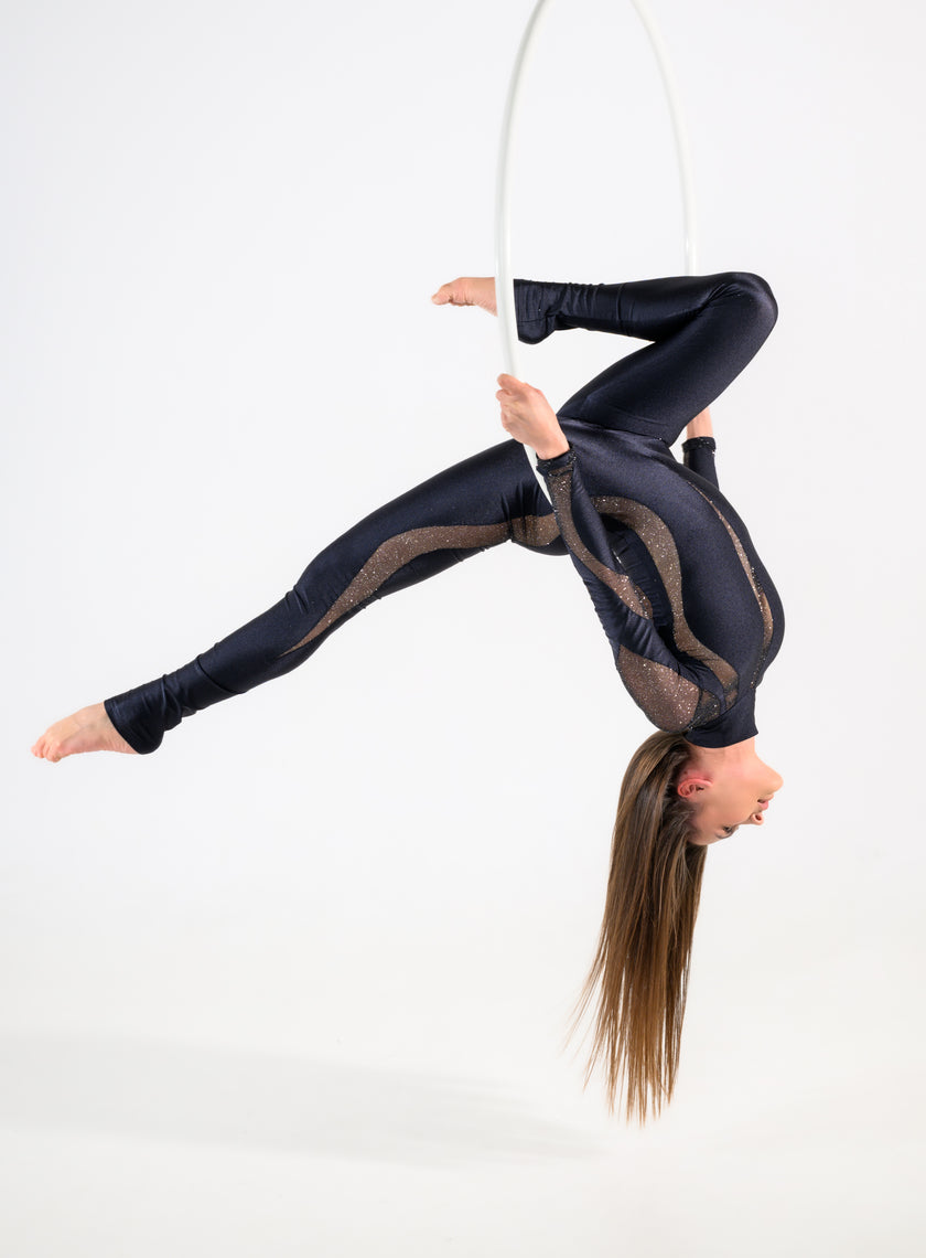 The combination of lycra with shimmering mesh creates the wow effect